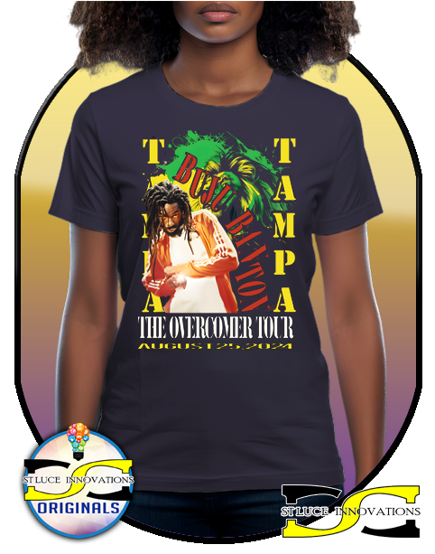 Making a bold statement at the Buju Banton Overcomer Tour in Tampa, Florida, Check out this custom T-shirt from St Luce Innovations. Known for creating one-of-a-kind gear, St Luce Innovations ensures that your outfit is as unique as your personality. Don’t worry about showing up to the party looking like someone else—your custom creation will be unmistakably yours.